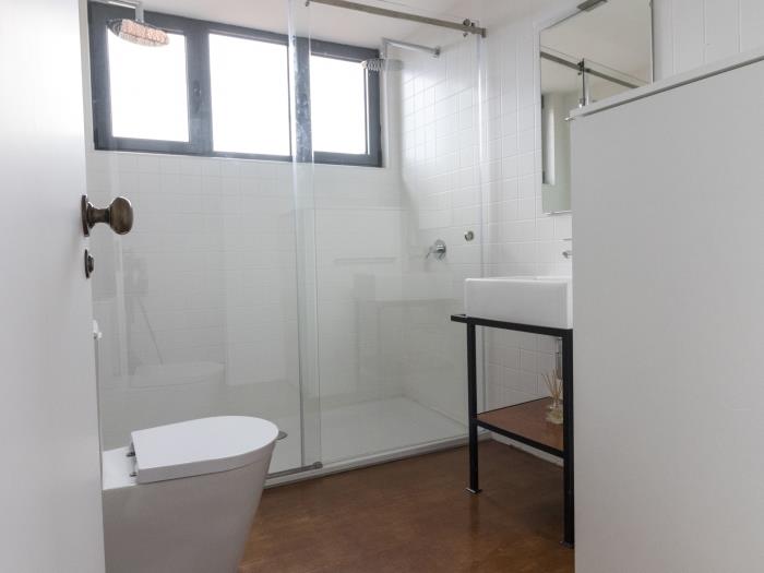 The bedroom maintains the spirit and the architecture of the original building, coupled with a contemporary décor.